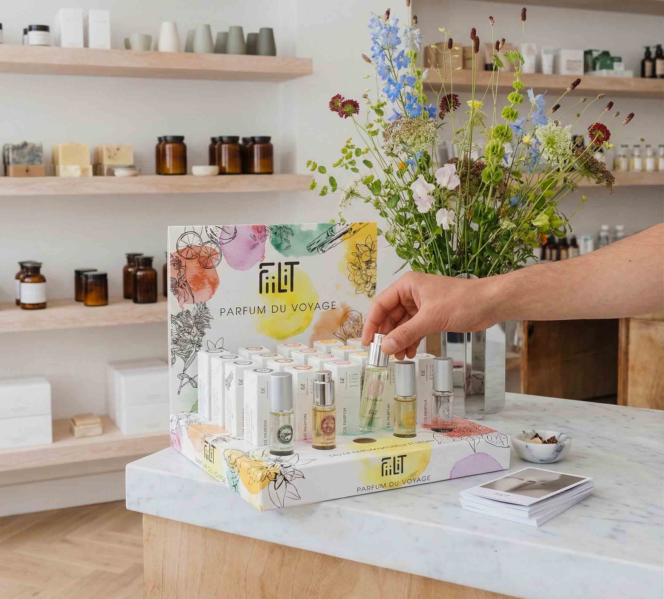 Verwandeln Sie Ihre Verkaufsfläche in ein echtes Reiseziel. Statten Sie sich mit unseren Entdeckungstools (Tester, Duftstreifen) und umweltfreundlichen Displays aus, um Ihre Kunden in unser Universum eintauchen zu lassen. Ein sensorischer Test ist der erste Schritt zur Bindung.