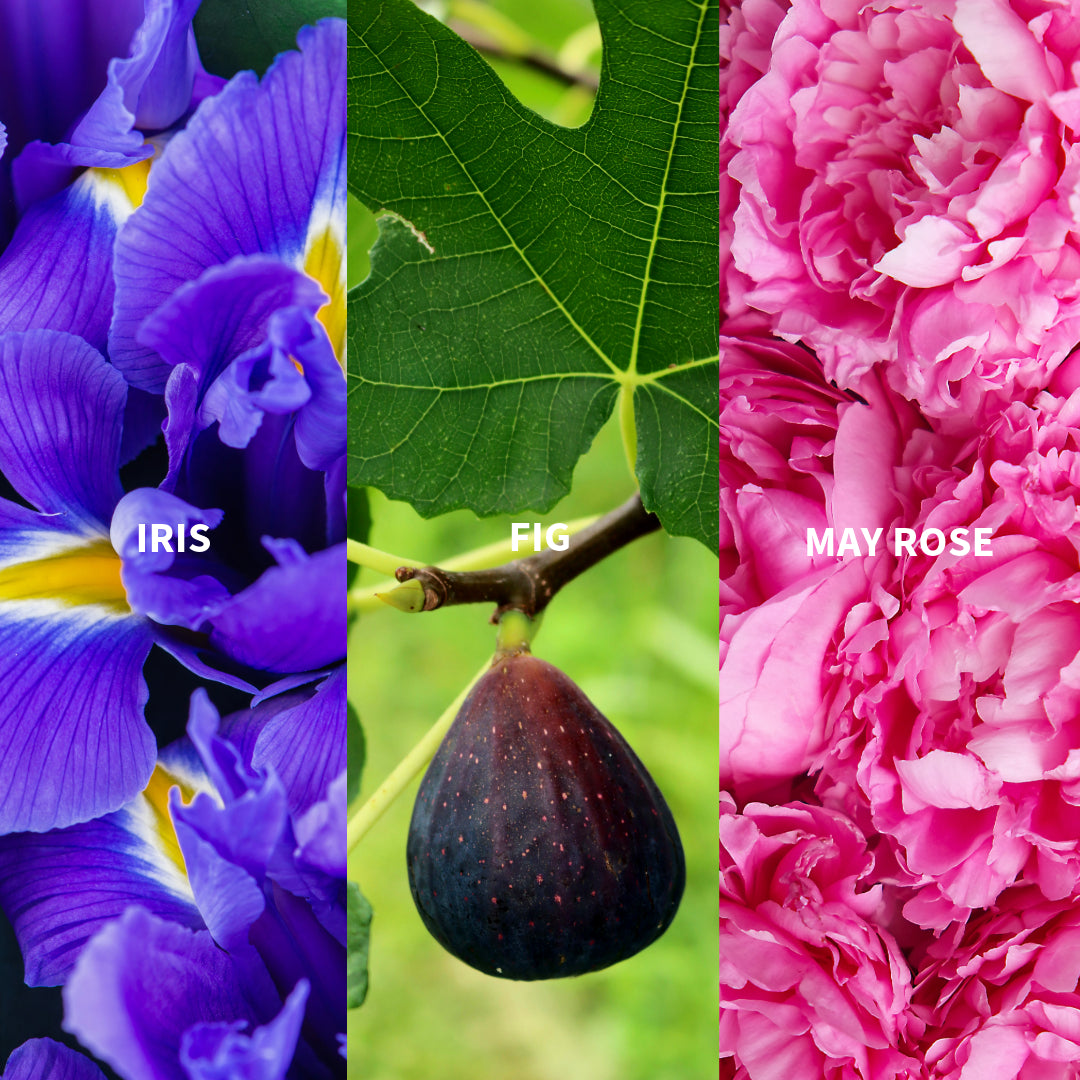 Família olfativa: Rosa iridescente aromática, figo, lavanda, manjericão, broto de groselha preta, Rosa de Grasse de maio, mimosa, íris, pinho e cipreste, carvalho, cedro